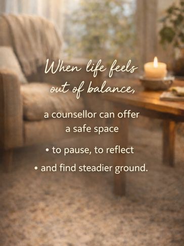 You may be coming to counselling feeling overwhelmed, disconnected, or unsure why things feel the way they do. Individual counselling and psychotherapy offers a confidential, supportive space to slow down and explore what is happening for you, at a pace that feels manageable and respectful.
